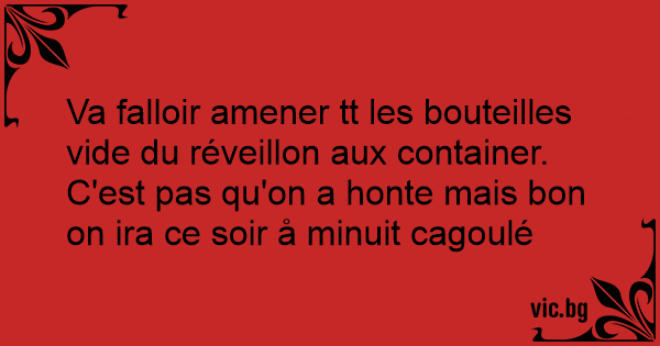 Va falloir amener tt les bouteilles vide du réveillon aux container.