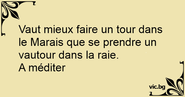 Vaut mieux faire un tour dans le Marais que se prendre un vautour dans la raie.