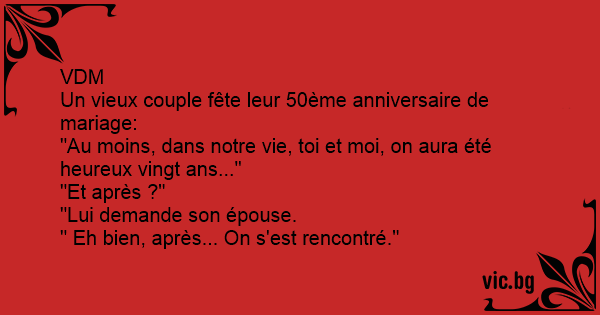 - I tjugo år var jag och min fru fullkomligt lyckliga. - Vad hände sen? - Vi träffades.