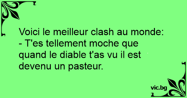 - T'es tellement moche que quand le diавlе t'as vu il est devenu un pasteur.
