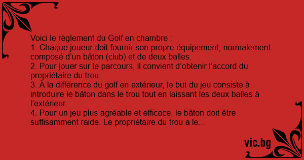 Voici le règlement du Golf en chambre :