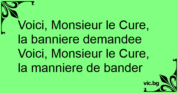 Voici, Monsieur le Cure, la banniere demandee<br />Voici, Monsieur le Cure, la manniere de bander