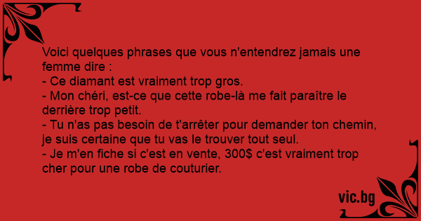 Voici quelques phrases que vous n'entendrez jamais une femme dire :