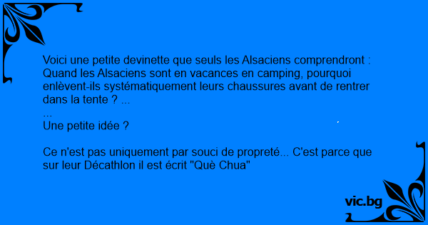 Quand les Alsaciens sont en vacances en camping, pourquoi enlèvent-ils systématiquement leurs chaussures avant de rentrer dans la tente ? ...
