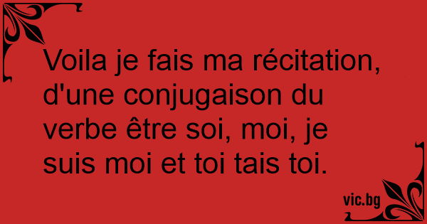 Voila je fais ma récitation, d'une conjugaison du verbe être soi, moi, je suis moi et toi tais toi.