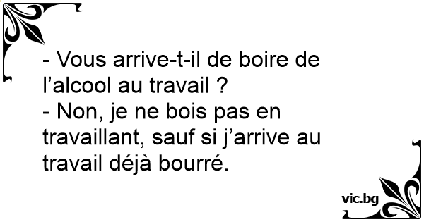 - Non, je ne bois pas en travaillant, sauf si j’arrive au travail déjà bourré.
