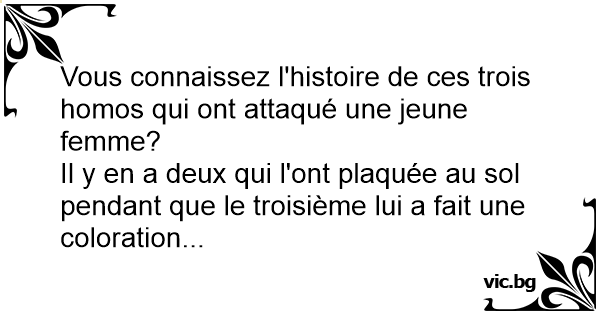 Vous connaissez l'histoire de ces trois homos qui ont attaqué une jeune femme?