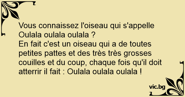Vous connaissez l'oiseau qui s'appelle Oulala oulala oulala ?