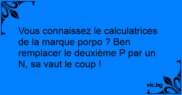 Vous connaissez le calculatrices de la marque porpo ? Ben remplacer le deuxième P par un N, sa vaut le coup !