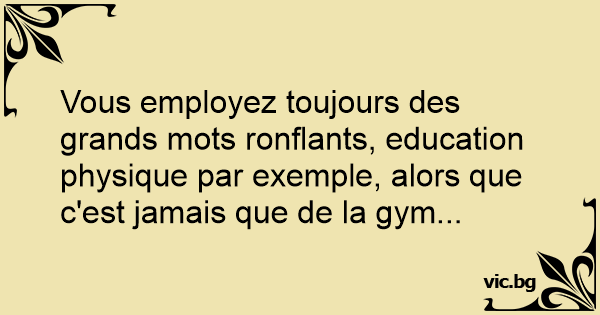 Vous employez toujours des grands mots ronflants, education physique par exemple, alors que c'est jamais que de la gym...