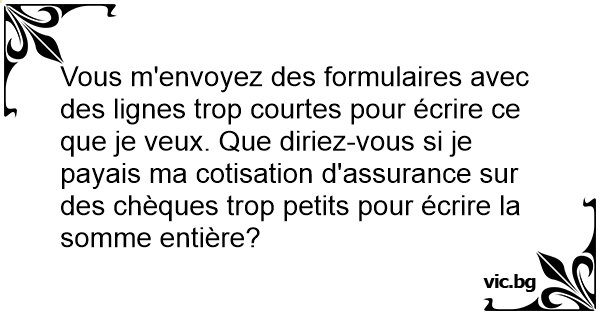 Vous m'envoyez des formulaires avec des lignes trop courtes pour écrire ce que je veux. Que diriez-vous si je payais ma cotisation d'assurance sur des chèques trop petits pour écrire la somme entière?
