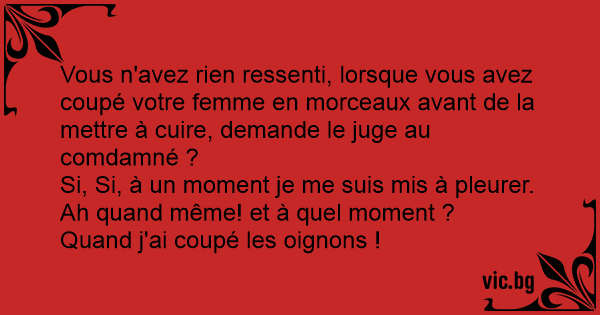 Vous n'avez rien ressenti, lorsque vous avez coupé votre femme en morceaux avant de la mettre à cuire, demande le juge au comdamné ?