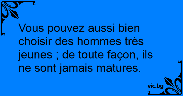 Vous pouvez aussi bien choisir des hommes très jeunes ; de toute façon, ils ne sont jamais matures.