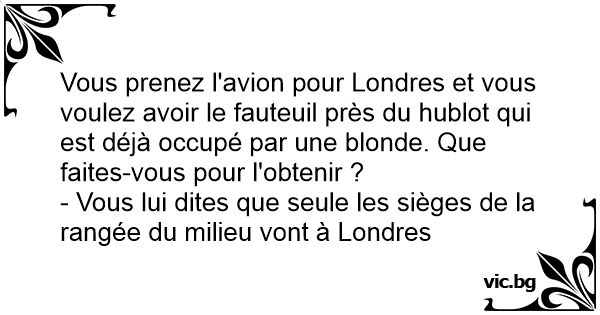 Vous prenez l'avion pour Londres et vous voulez avoir le fauteuil près du hublot qui est déjà occupé par une blonde. Que faites-vous pour l'obtenir ?