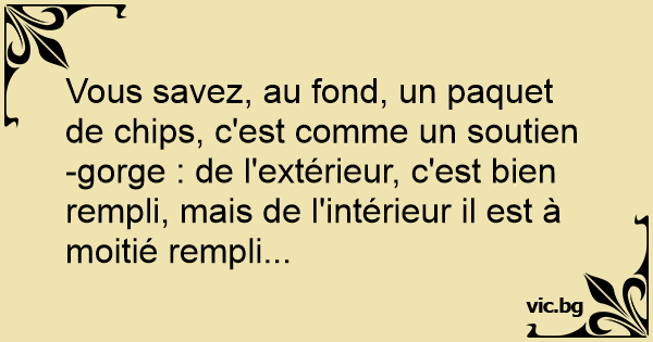Vous savez, au fond, un paquet de сhiрs, c'est comme un soutien-gorge : de l'extérieur, c'est bien rempli, mais de l'intérieur il est à moitié rempli...