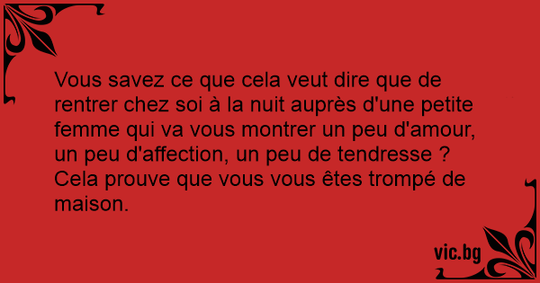 Vous savez ce que cela veut dire que de rentrer chez soi à la nuit auprès d'une petite femme qui va vous montrer un peu d'amour, un peu d'affection, un peu de tendresse ?