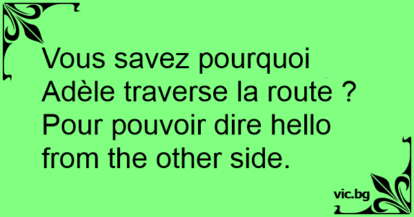 Vous savez pourquoi Adèle traverse la route ?