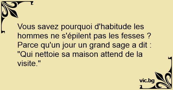 Vous savez pourquoi d'habitude les hommes ne s'épilent pas les fesses ?