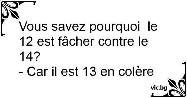 Vous savez pourquoi le 12 est fâcher contre le 14?