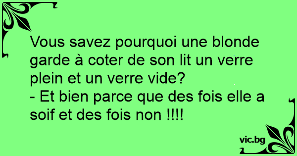 Vous savez pourquoi une blonde garde à coter de son lit un verre plein et un verre vide?