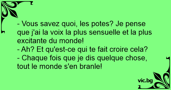 - Vous savez quoi, les potes? Je pense que j'ai la voix la plus sensuelle et la plus excitante du monde!