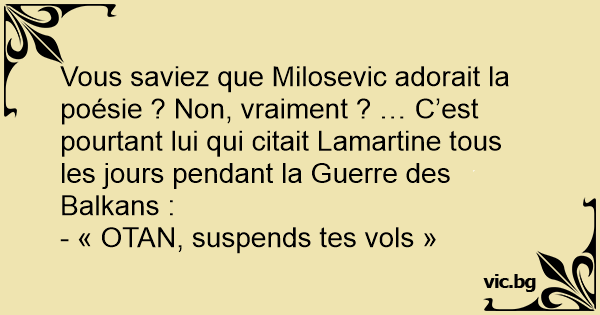 Vous saviez que Milosevic adorait la poésie ? Non, vraiment ? … C’est pourtant lui qui citait Lamartine tous les jours pendant la Guerre des Balkans :