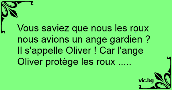 Vous saviez que nous les roux nous avions un ange gardien ? Il s'appelle Oliver ! Car l'ange Oliver protège les roux .....