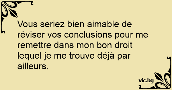 Vous seriez bien aimable de réviser vos conclusions pour me remettre dans mon bon droit lequel je me trouve déjà par ailleurs.