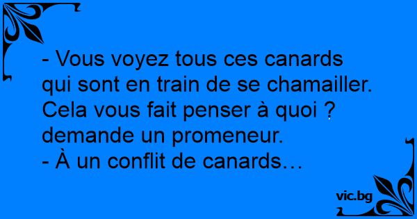 - Vous voyez tous ces canards qui sont en train de se chamailler. Cela vous fait penser à quoi ? demande un promeneur.