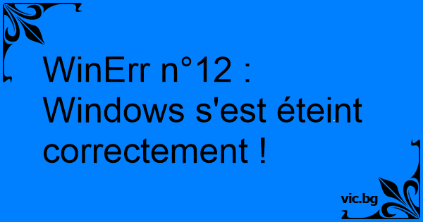 WinErr n°12 : Windows s'est éteint correctement !