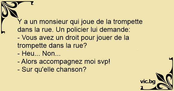 Y a un monsieur qui joue de la trompette dans la rue. Un policier lui demande: