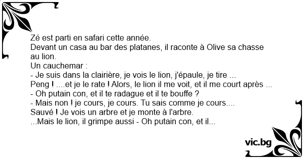 - Je suis dans la clairière, je vois le lion, j'épaule, je tire ...