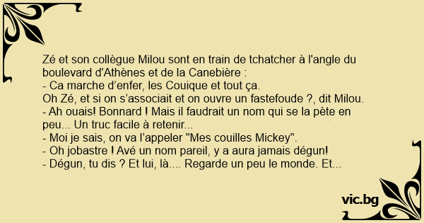 Zé et son collègue Milou sont en train de tchatcher à l'angle du boulevard d'Athènes et de la Canebière :