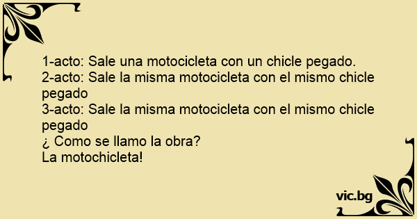 1-acto: Sale una motocicleta соn un chicle pegado.