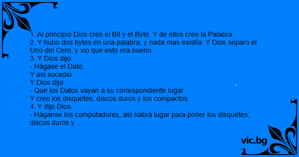 1. Al principio Dios creo el Bit y el Byte. Y de ellos creo la Palabra.