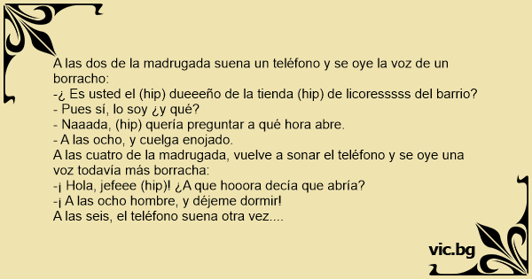 A las seis, el teléfono suena otra vez. El borracho casi no puede ya hablar: