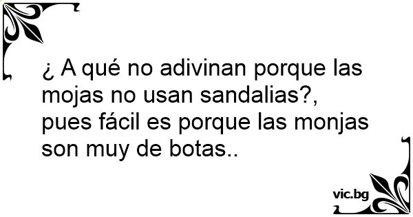 ¿ A qué no adivinan porque las mojas no usan sandalias?, pues fácil es porque las monjas son muy de botas..