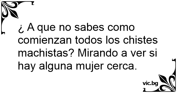 ¿ A que no sabes como comienzan todos los chistes machistas? Mirando a ver si hay alguna mujer cerca.