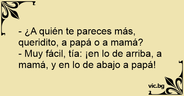 - ¿A quién te pareces más, queridito, a papá o a mamá?