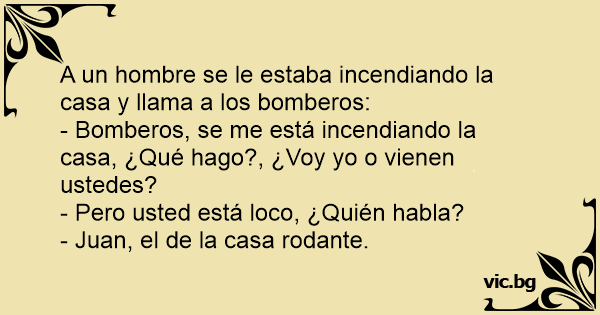 - Bomberos, se me está incendiando la casa, ¿Qué hago?, ¿Voy yo o vienen ustedes?