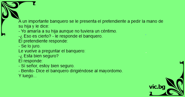 A un importante banquero se le presenta el pretendiente a pedir la mano de su hija y le dice: