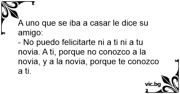 - No puedo felicitarte ni a ti ni a tu novia. A ti, porque no conozco a la novia, y a la novia, porque te conozco a ti.