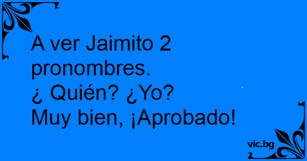- Pepito, dime dos pronombres. - ¿Quién, yo?. - Muy bien.