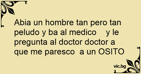 Abia un hombre tan pero tan peludo y ba al medico y le pregunta al doctor doctor a que me paresco a un OSITO