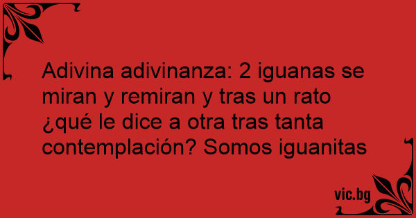 Adivina adivinanza: 2 iguanas se miran y remiran y tras un rato ¿qué le dice a otra tras tanta contemplación? Somos iguanitas