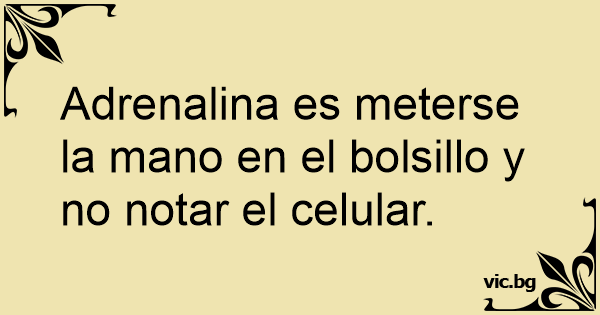 Adrenalina es meterse la mano en el bolsillo y no notar el celular.