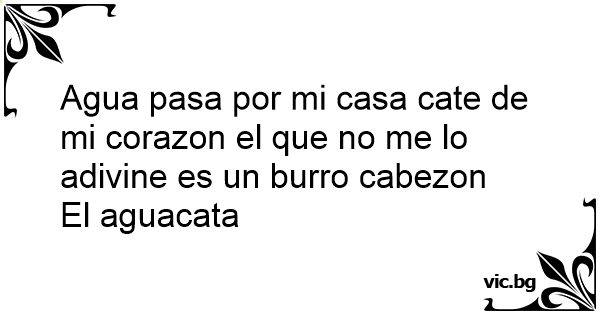 Agua pasa por mi casa cate de mi corazon el que no me lo adivine es un вurrо cabezon