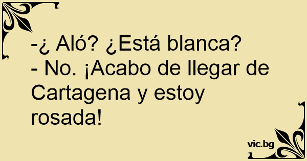 - No. ¡Acabo de llegar de Cartagena y estoy rosada!