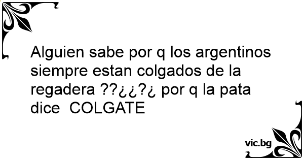 Alguien sabe por q los argentinos siempre estan colgados de la regadera ??¿¿?¿ por q la pata dice COLGATE