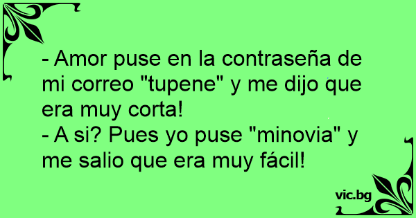 - Amor puse en la contraseña de mi correo "tupene" y me dijo que era muy corta!